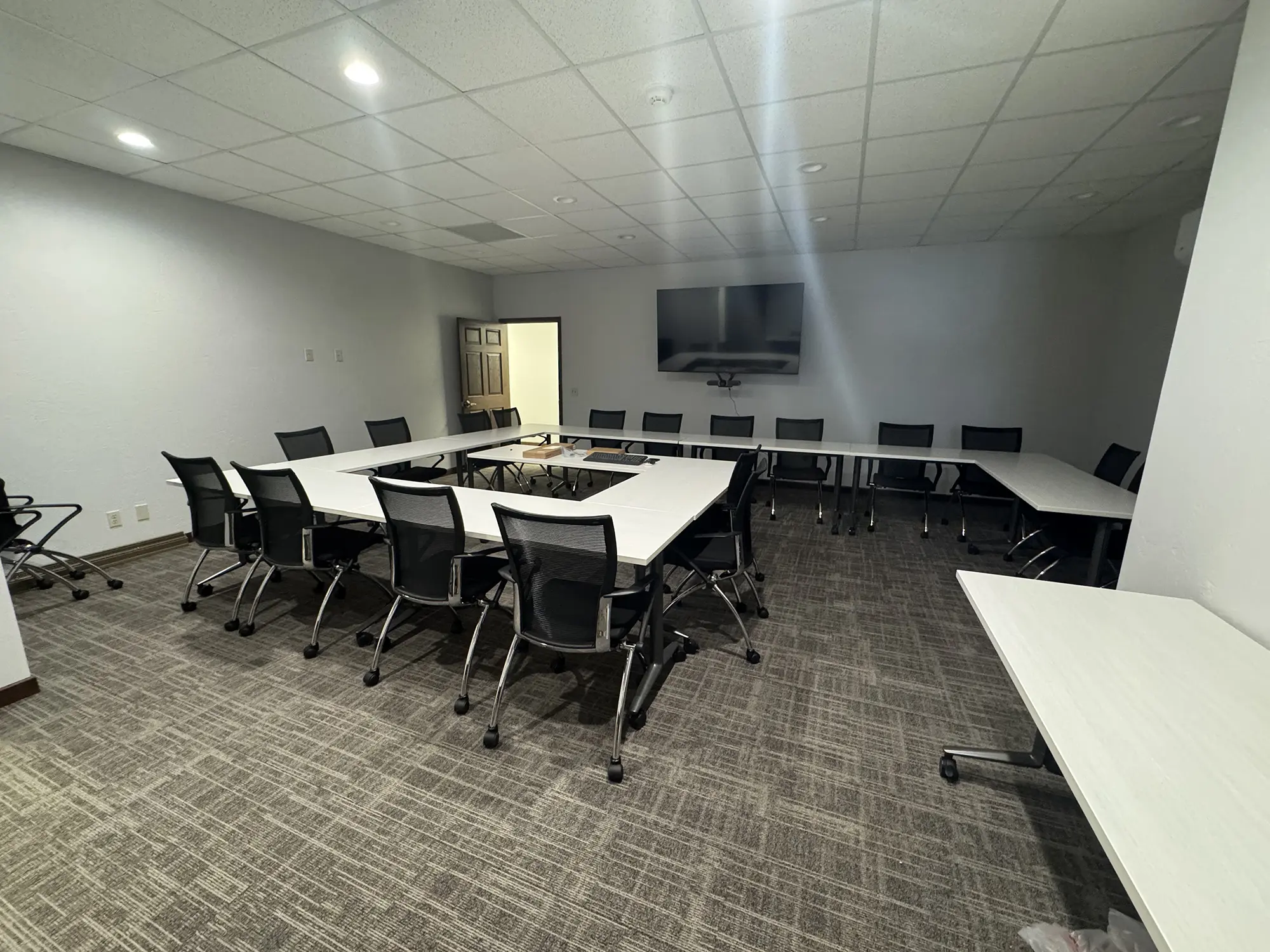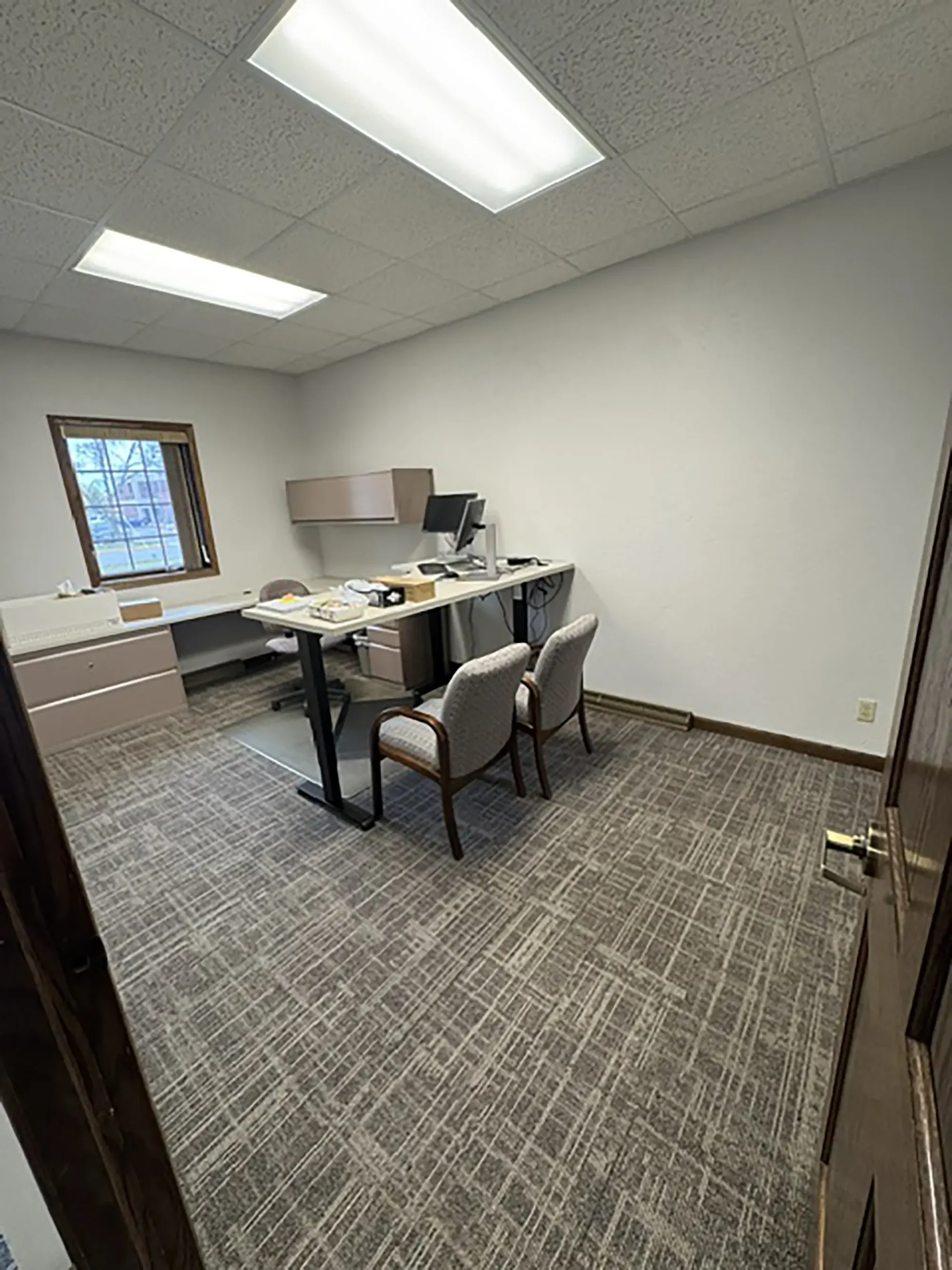 We completed a comprehensive interior remodel that included tear down and restructuring of walls, office spaces, bathrooms, and a new kitchen addition.